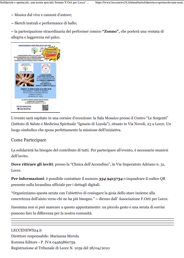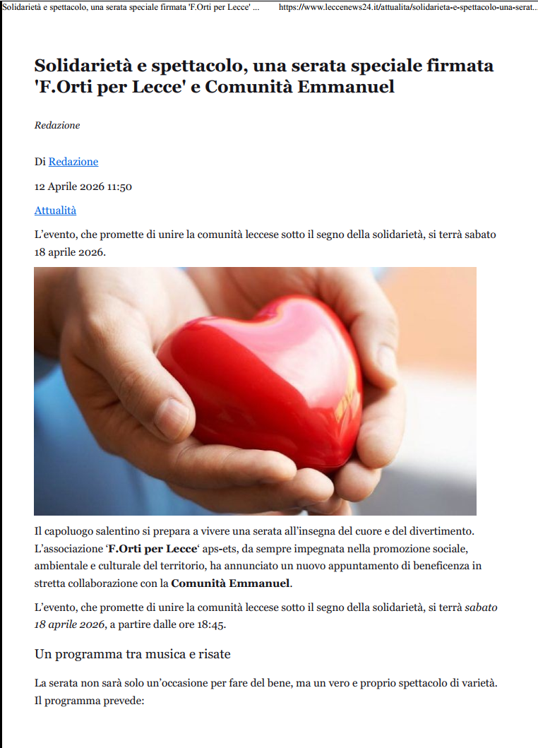 ALL'ASSOCIAZIONE F.ORTI PER LECCE APS-ETS NON COSTA NULLA CODICE FISCALE: 93123300753 |